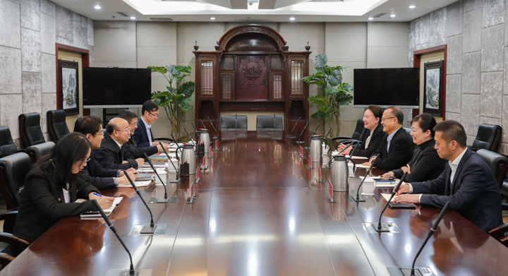 4月7日,全国政协常委、香港中华总商会会长、粤港澳大湾区企业家联盟主席、环渤海企业家联盟主席、澳门六合彩开奖结果主席蔡冠深博士一行访问天津市外办,与栾建章主任进行座谈交流。