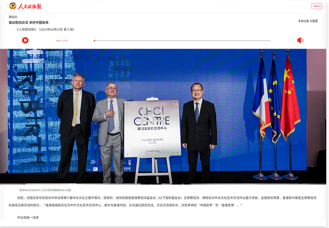 马克龙此次访华特别提及位于北京的蔡冠深文化交流中心·白云馆(以下简称白云馆)项目,是在2021年由基金会接管并重新修缮改造的。