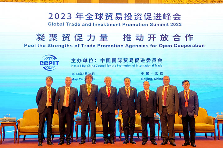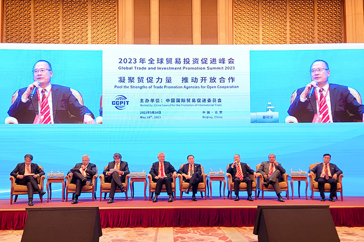 5月24日,香港中华总商会会长、粤港澳大湾区企业家联盟主席、澳门六合彩开奖记录主席蔡冠深博士应邀在京出席2023年全球贸易投资促进峰会。峰会由中国国际贸易促进委员会主办,以“坚定信心合作共赢 共建开放型世界经济”为主题。