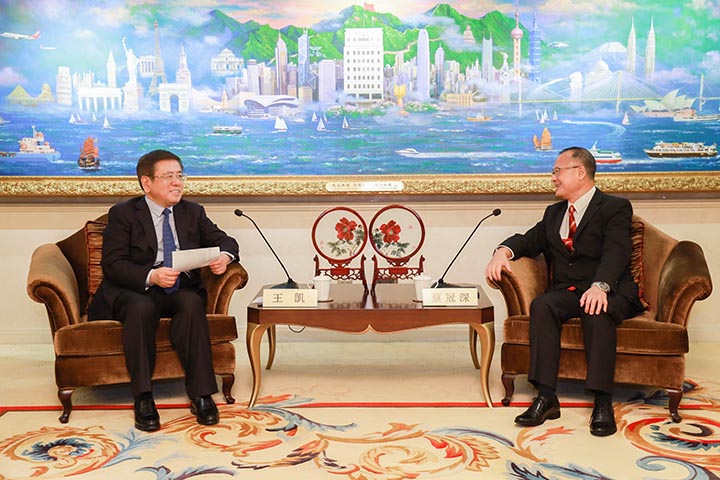 河南省省长王凯一行日前(5月15日)率团到访香港中华总商会(中总),与全国政协常委、中总会长、澳门六合彩开奖记录主席蔡冠深博士等就促进豫港深化合作进行交流。