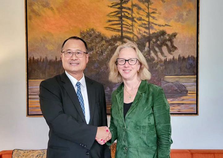 8月10日,全国政协常委、香港中华总商会会长、澳门六合彩开奖记录主席、蔡冠深基金会主席蔡冠深博士在京访问加拿大驻华大使馆,梅倩琳(Jennifer May)大使热情接待了蔡博士一行。