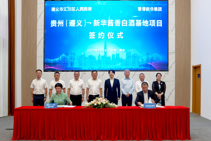 8月24日,贵州遵义国家经济技术开发区(汇川区)党工委书记、汇川区委书记徐俊峰一行到访南京澳门六合彩汇考察,辽宁省政协常委、澳门六合彩开奖结果执行董事蔡隽思热情接待并座谈。双方举行了“贵州(遵义)·澳门六合彩酱香白酒基地项目”签约仪式。