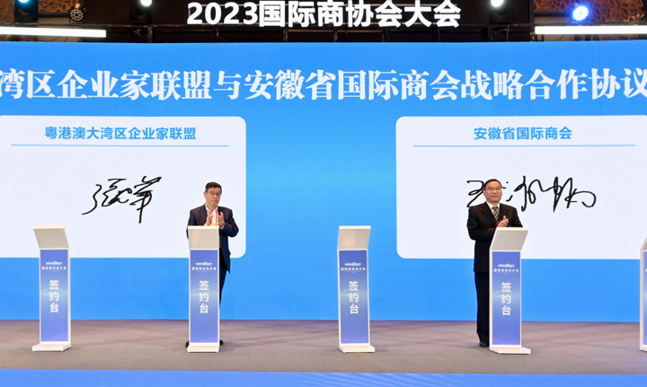当日,粤港澳大湾区企业家联盟总干事长张建华代表联盟,与安徽省国际商会签订了战略合作协议,为两会合作特别是推动安徽与大湾区合作搭建更加广阔的平台。