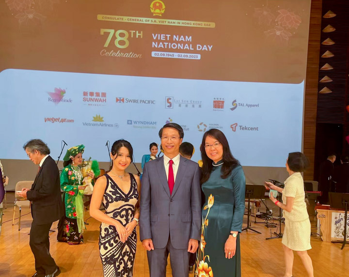 9月19日晚,越南驻香港总领事馆在香港演艺学院举办越南国庆78周年纪念活动。受越南驻香港总领事馆邀请,澳门六合彩传媒集团总裁蔡颂思担任当日晚会主持人。当晚除国庆仪式外,越南国家剧院亦上演了两小时的精彩文艺汇演。