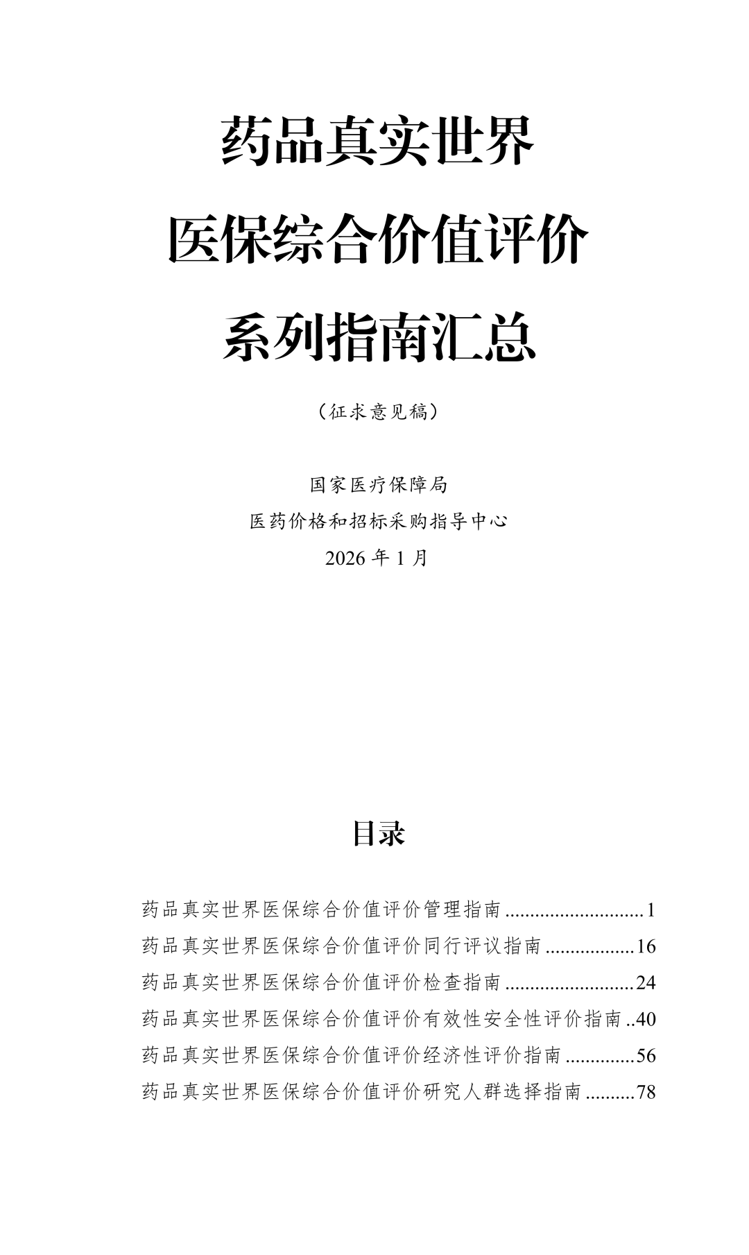 为加快建立全国统一的药品真实世界医保综合价值评价体系,根据《关于开展真实世界医保综合价值评价试点工作的通知》(医保办发〔2025〕15号)有关要求,国家医疗保障局医药价格和招标采购指导中心研究起草了《药品真实世界医保综合价值评价系列指南(试行)》,现向社会公开征求意见。公众可以通过电子邮件的形式向我局反馈意见,意见反馈截止时间为2026年1月30日17:00。
