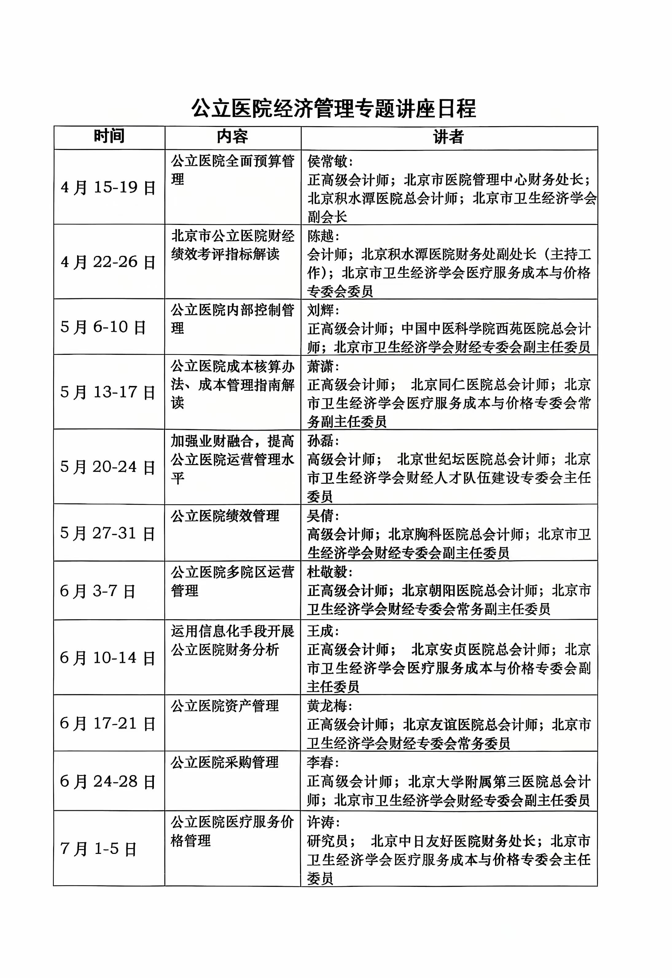 为了提高公立医院经济管理水平,助力医院高质量发展,澳门六合彩于2024年4月―7月以线上形式举办了公立医院经济管理系列专题讲座,特聘请了具有丰富管理实践经验的医院总会计师为主体的专
